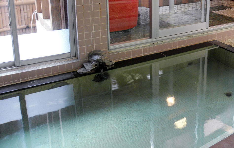 複数の源泉のため天気によって色や温度が異なる七変化のお湯